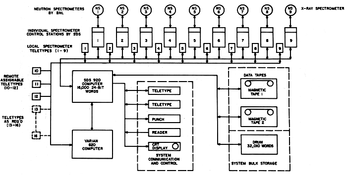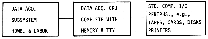 On-line data-acquisition computer systems are made in a wide range of types and sizes. In all cases at least one electronic computer is involved—a stored-program machine—because wired-program devices such as pulse-height analyzers are not considered to be computers. The rest of the system typically consists of input/output (I/O) devices such as analog-to-digital converters (ADC's), printers, cathode-ray oscilloscopes, plotters, and control devices, which may include, in addition to the console typewriter, switch boxes to simplify the control of special types of operations and perhaps a set of logic circuits associated with the input system, used to provide preliminary selection of incoming data. In a small but increasing number of cases a computer is seen dedicated entirely to a "process-control" application such as the automatic adjustment of the shim coils of a variable-energy cyclotron or the control of data acquisition in a nuclear-scattering experiment, adjustments such as changing the angle of observation being made essentially under direct automatic control of the computer. The smallest on-line systems use the smallest commercially available computers; the largest use computers bigger than those which until recently served most computing centers. Large systems sometimes include one or more satellite computers. The cost of individual systems ranges from $25,000 to $1,000,000, approximately. The total cost of computer systems in low-energy nuclear laboratories is estimated by now to have reached about $20,000,000. (There has been a larger expenditure in the high-energy nuclear field, where computer systems have been employed extensively for some years longer and where experiments are so expensive that the economic advantages of computer use were quickly recognized.)