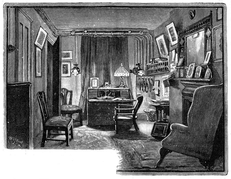 The footman showed me into the Count's study, while he went to inform him of my arrival. The spacious room was furnished in a most luxurious manner. Against the walls stood enclosed bookshelves well furnished with books, and surmounted by bronze busts. Over the marble mantelpiece was a large mirror. The floor was covered with green cloth, over which were spread rugs and carpets.