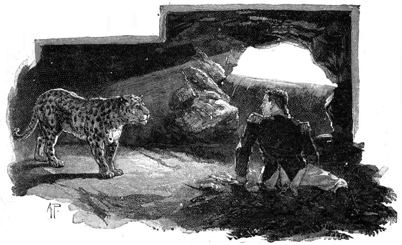 When he felt sure that he had perfectly subdued the ferocity of his capricious companion, whose hunger had been satisfied so cruelly the night before, he got up to leave the grotto. The panther let him go; but when he had climbed the hill, she came bounding after him with the lightness of a sparrow hopping from branch to branch, and rubbed herself against the soldier's leg, arching her back after the fashion of a cat. Then looking at her guest with eyes whose brightness had grown less inflexible, she uttered that savage cry which naturalists have compared to the sound of a saw.