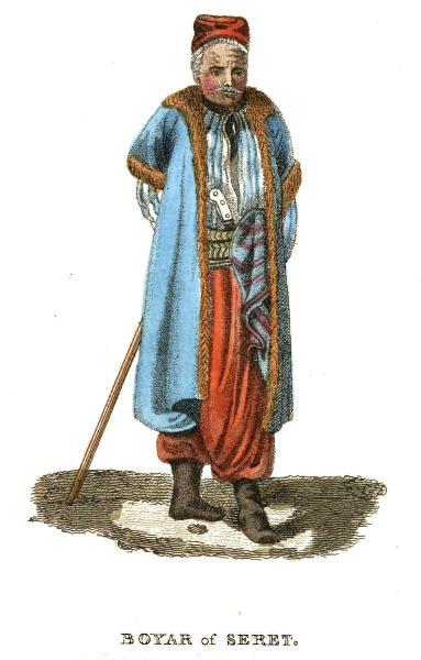 The Walachian styles himself a Roman in his language, which is a medley of corrupt Latin and Illyrian; but it is very rarely that Roman valour can be discovered in him. He dislikes the military profession, and it is very long before he becomes habituated to its hardships: but yet none endures with greater fortitude, sufferings and privations which cannot be avoided. His wants are very moderate. He cheerfully and thoughtlessly consumes what he has as long as it lasts, and afterwards fasts with exemplary resignation. He does not always duly respect the property of others, but cheerfully shares what he possesses with those who need relief.