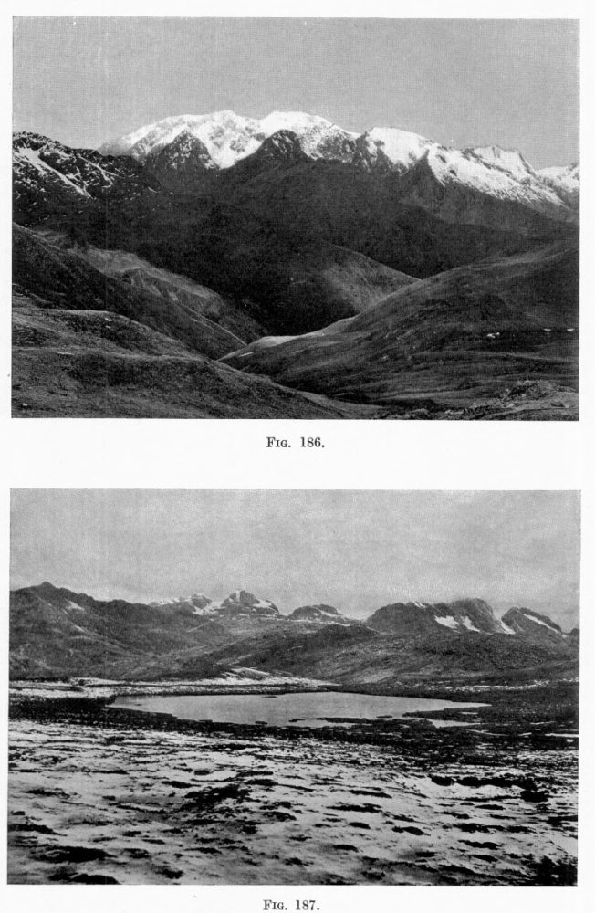 [15] Marcoy who traveled in Peru in the middle of the last century was greatly impressed by the sympathetic changes of aspect and topography and vegetation in the eastern valleys. He thus describes a sudden change of scene in the Occobamba valley: “... the trees had disappeared, the birds had taken wing, and great sandy spaces, covered with the latest deposits of the river, alternated with stretches of yellow grass and masses of rock half-buried in the ground.” (Travels in South America, translated by Elihu Rich, 2 vols. New York, 1875, Vol. 1, p. 326.)