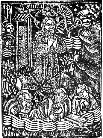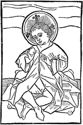 We have said that according to a generally received opinion we must look upon playing cards as the oldest remains of xylography. But the evidence on which this opinion is based has only a negative authority. Because the old books in which cards are mentioned say nothing of any other productions of wood engraving, it has been inferred that such productions did not yet exist; but is it not allowable to ask if the silence of writers in such a case absolutely establishes such a negative? Might not this silence be explained by the nature of the work, and of the subject treated, which was generally literary or philosophical, and quite independent of questions of art? When speaking of cards, whether to formally forbid or only to restrain their use, the chroniclers and the moralists of the fourteenth century, or of the beginning of the fifteenth, probably thought but little of the way they were made. Their intention was to denounce a vice rather than to describe an industrial process. Why, then34 should they have troubled about other works in which this process was employed, not only without danger to religion and morality, but with a view of honouring both? Pious pictures cut in wood by the hands of monks or artisans might have been well known at this time, although contemporary authors may have chosen to mention only cards; and, without pushing conjecture too far, we may take the liberty of supposing that engravers first drew their inspiration from the same source as illuminators, painters on glass, and sculptors. Besides, we know well that art was then only the naïve expression of religion and the emblem of Christian thought. Why should the cutters of xylographic figures have been an exception to the general rule? and what strange freak would have led them to choose as the subject of their first efforts a species of work so contrary to the manners and traditions of all the schools?