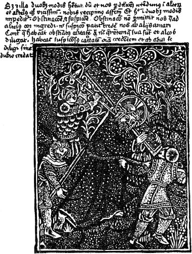 Papillon, in support of the opinion that the earliest attempts took place at Ravenna before the end of the thirteenth century, brings into court a somewhat doubtful story. Two children of sixteen, the Cavaliere Alberico Cunio and his twin sister10 Isabella, took it into their heads in 1284 to carve on wood "with a little knife," and to print by some process seemingly as simple a series of compositions on "the chivalrous deeds of Alexander the Great." The relations and friends of the two young engravers, Pope Honorius IV. amongst others, each received a copy of their work. After this no more was heard of the discovery till the day when Papillon miraculously came across evidences of it in the library of "a Swiss officer in retirement at Bagneux." Papillon unfortunately was satisfied with merely recording his discovery. It never occurred to him to ensure more conclusive publicity, nor even to inquire into the ultimate fate of the prints he only had seen. The collection of "The Chivalrous Deeds of Alexander the Great" again vanished, and this time not to reappear. It is more prudent, in default of any means of verification, to withhold our belief in the precocious ability of the Ravenna twins, their xylographic attempts, and the assertions of their admirers, although competent judges, such as the Abbé Zani4 and after him Emeric David, have not hesitated to admit the authenticity of the whole story.