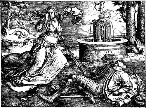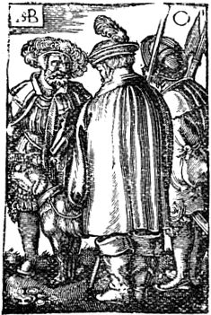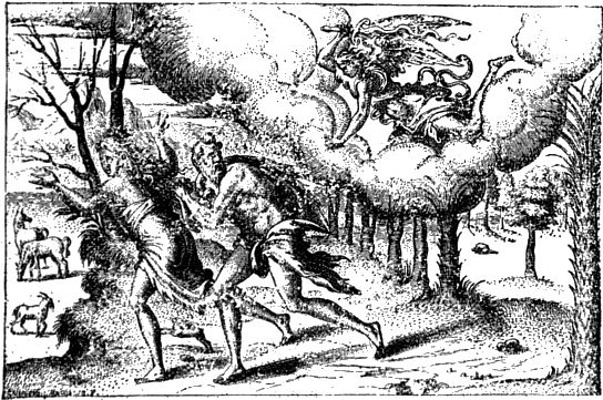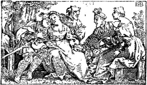 3 This method, earlier than that of the incised line, led to engraving "in camaïeu," which was skilfully practised in Italy and Germany during the sixteenth century. As in camaïeu engraving those lines which define the contours are left as ridges by the cutting away of the surrounding surface, we may say that in this method (which the Italians call "chiaroscuro") the usual processes of engraving in relief are employed. But it is a further object of camaïeu to produce on the paper flat tints of various depths: that is to say, a scale of tones somewhat similar to the effect of drawings washed in with Indian ink or sepia, and touched up with white. Now such a chromatic progression can only be arrived at by the co-operation of distinct processes. Therefore, instead of printing from a single surface, separate blocks are employed for the outlines, shadows, and lights, and a proof is taken by the successive application of the paper to all these blocks, which are made to correspond exactly by means of guiding marks.