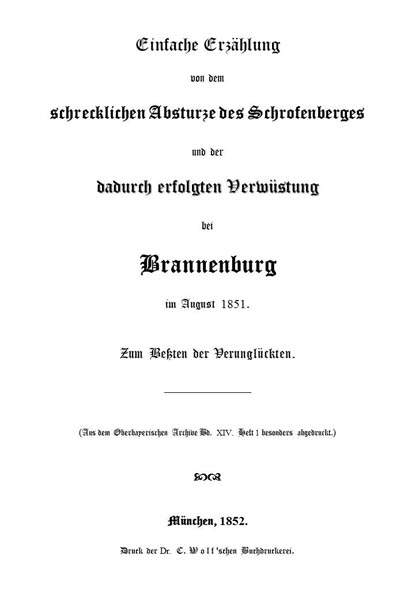 Title: Einfache Erzählung von dem schrecklichen Absturze des Schrofenberges und der dadurch erfolgten Verwüstung bei Brannenburg im August 1851