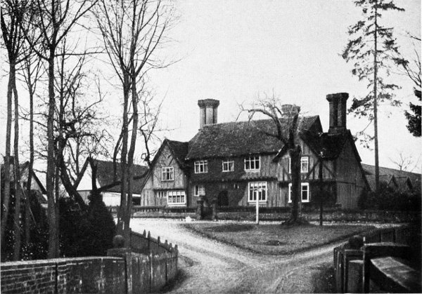 It is not strange that Hertfordshire is favored by the artists, especially those whose success has been such as to enable them to maintain country homes. I had the pleasure of calling on another successful young painter in the adjacent village of Harpenden and on inquiring for his studio we were given the unique direction to “follow the road along the common until you come to a new house that looks like an old one.” And the description was apt, indeed, for we did not see elsewhere the half-timber frame-work with herring-bone masonry, the studded oak doors with monstrous, straggling wrought-iron hinges, the open beams, wide carved mantels, the mullioned windows with diamond panes set in iron casements—all reproduced with the perfect spirit of the Elizabethan builder.