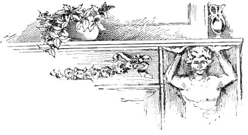 The lawyer scrutinized the background of the picture more carefully, and, sure enough, the walls were covered with what at first seemed a rich sort of illuminated paper, but proved to be composed entirely of Christmas cards, many of which he had[Pg 15] never seen. Even in the momentary glance he gave, he observed that those which had taken prizes and had been most largely advertised during the past few winters, were tucked away in obscure corners, while several which were exceedingly simple in design and text occupied the most prominent positions.