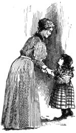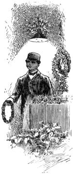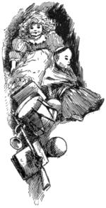 As the conductor held up these articles in his stiff, red fingers, turning the doll about so as to show her flaxen braid to the best advantage, and inducing the arms to take the positions alluded to, the Shadow crept away, and had well-nigh disappeared. But it returned again, thicker than ever, when he said, with a little choke in his voice, “I did mean to get ’em a little tree, with candles on it, and a picture-book or two; but our pay ain’t overmuch, and we had sickness, and—and”—he was very busy doing up the bundle, and very clumsy he must have been, too, for it was a long time before the wide-looped, single bow-knot was tied, and the parcel carefully put away again.