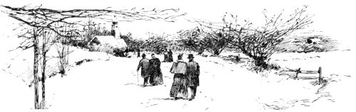 On the shady side of the old stone wall that ran along the road toward the railway-station, a narrow, irregular snowbank, its surface fantastically carved[Pg 167] and honeycombed by the sun, still reminded her of her winter night’s ride. How dreary it had all seemed! How she had dreaded even the Christmas festivities, with the inevitable being “left out”—the awkward movements when she felt that the company about her were not quite sure whether to treat her as an equal or a servant,—worst of all, the well-meant efforts of Mrs. Walton to smooth matters over in private! Ah! how it was all changed now! She would never, never go back to her old position; indeed,—and a shadow crossed her forehead as she thought of it,—Mrs. Walton had never signified her wish to have her return. She would soon be able to help her kind friends in the housework, in sewing, and in other little ways, until she could obtain something to do for herself. She would pay them sometime. How good they had all been to her! She thought once more of that bitter, hopeless ride through the snow. How cold she had been!—her right arm benumbed with holding the robe over the children, whom, with all her troubles, she had learned to love very dearly. She recalled the sudden halt, the moaning of the wind through the trees overhead, the sifting of the sleety snow against the sides of the sleigh. Then she thought of the firm voice, assuming control so quietly, with no needless words, but, what was better, two stout arms. How they had seemed to lift her out of all her troubles, even while she was borne straight into the whirl and might of the storm! She had felt that the arms were stronger than the wind, and so had trusted them. The girl[Pg 168] was resting her cheek upon her hand as she lived that long night over again, and she hardly knew what a glow was in her face, or how dewy bright her eyes were, as with a start she turned to answer a knock she had learned to recognize.