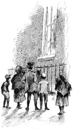 As soon as Mr. Broadstreet recovered himself and cleared his eyes from the blinding snow, he saw a heavy, black Shadow on the sidewalk enveloping his own person and resting upon the figure of a man who had evidently just sheltered himself behind the high stone steps, for his footprints leading from the street were still quite fresh. As the man thrashed his arms and stamped vigorously, to start the blood through his benumbed feet, a bright button or two gleamed upon his breast through the cape of his greatcoat. Mr. Broadstreet now recognized him as the policeman whose beat it was, and whom he had occasionally favored with a condescending nod, as he came home late at night from the theater or the club. He had never addressed him by so much as a word, but now the Shadow was full upon him, and Mr. Broadstreet felt that here was his first opportunity.