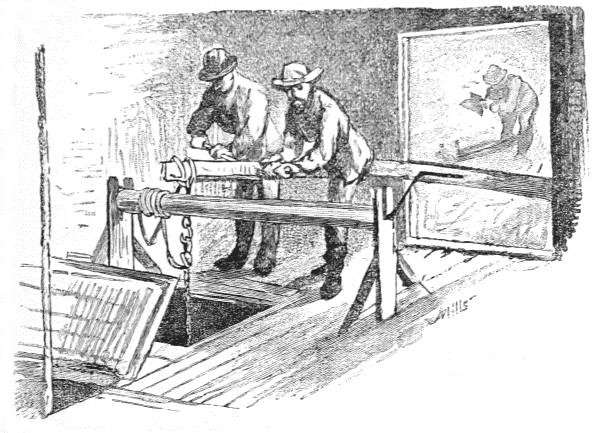 As each horse was caught, one of the pursuers would hasten to him as rapidly as possible, fasten the end of the lariat to the horn of his saddle, and then lose no time in loosening the noose about the captive’s neck, which by that time would have choked the poor beast almost into insensibility. This done, he would leave the wild and tame animals tied together, to fight it out, and hurry on to help his companions. In this way several horses were captured, and proved very docile and capable when put in the harness.
