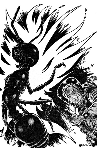 Moran grunted. Distastefully, he saw his predicament made worse. He knew what had happened here. He could begin to guess at other things to be discovered. It had not been practical for men to move onto new planets and subsist upon the flora and fauna they found there. On some new planets life had never gotten started. On such worlds a highly complex operation was necessary before humanity could move in. A complete ecological complex had to be built up; microbes to break down the rock for soil, bacteria to fix nitrogen to make the soil fertile; plants to grow in the new-made dirt and insects to fertilize the plants so they would multiply, and animals and birds to carry the seeds planet-wide. On most planets, to be sure, there were local, aboriginal plants and animals. But still terrestrial creatures had to be introduced if a colony was to feed itself. Alien plants did not supply satisfactory food. So an elaborate adaptation job had to be done on every planet before native and terrestrial living things settled down together. It wasn't impossible that the scuttling things were truly beetles, grown large and monstrous under the conditions of a new planet. And the ground....