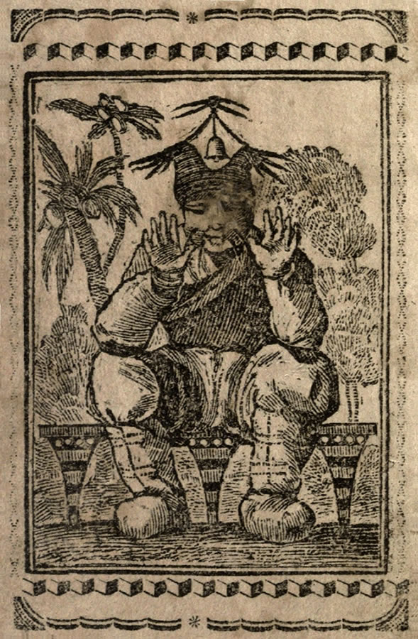 The father was quite delighted with the offer, especially as Blue Beard told him he should be the master of all his slaves, and next himself in power. Irene too tho't she should like it vastly; "what a fine thing," said she to herself, "it will be to have fine rooms to walk in when the weather is bad, and gardens to range in when the weather is fine; well, I almost wish he had fallen in love with me, for I don't think the great Abomelique would be so ugly, if it was not for his monstrous [pg 10]great Blue Beard;" Such was the thought of Irene. As to poor Fatima she fainted away, which frightened Blue Beard, who would have been glad to have found her agreeable to his wishes, however with much ado they brought her to herself when Blue Beard left her, promising to come the next day, and fetch her in state to the Castle: after he was gone nothing ran in the father's head but how he should enjoy himself at the Castle. As to Irene, she could not help pitying her sister, who was in a sad taking.