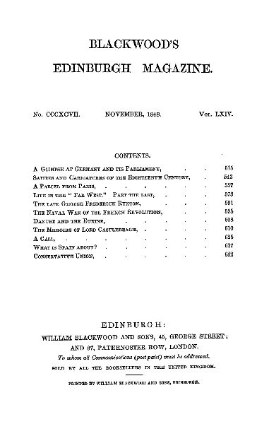 No. CCCXCVII.NOVEMBER, 1848.Vol. LXIV.