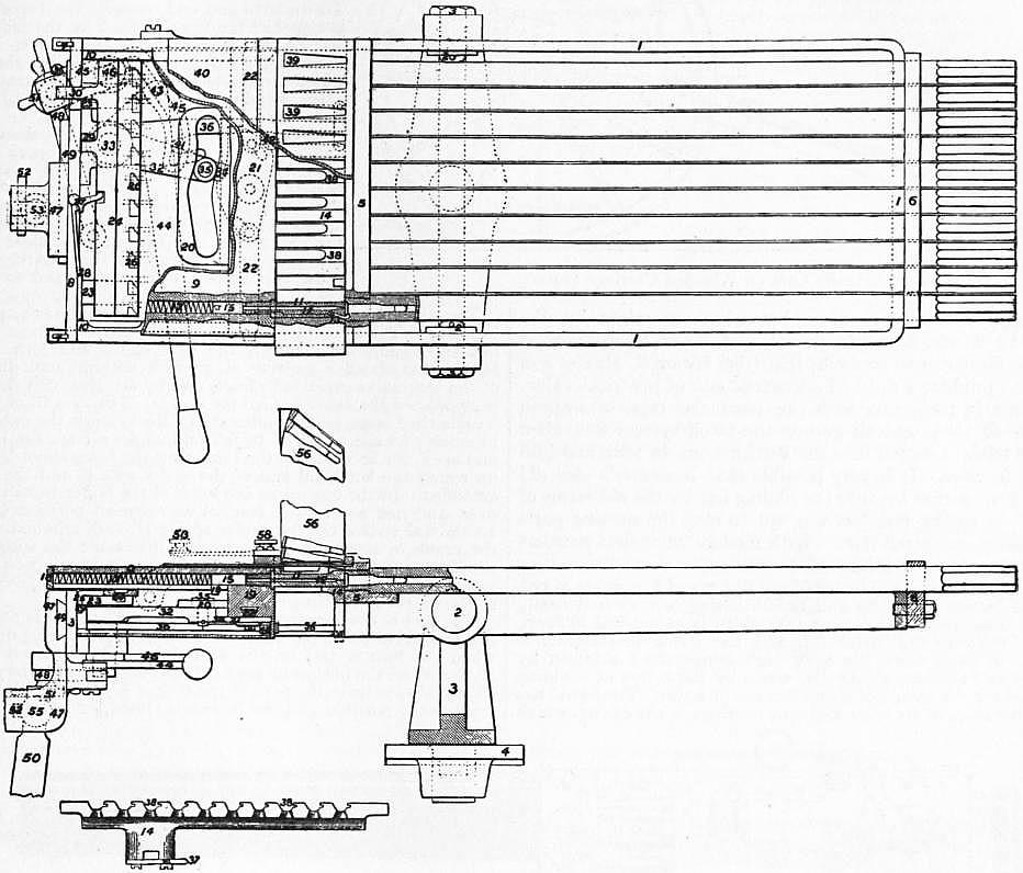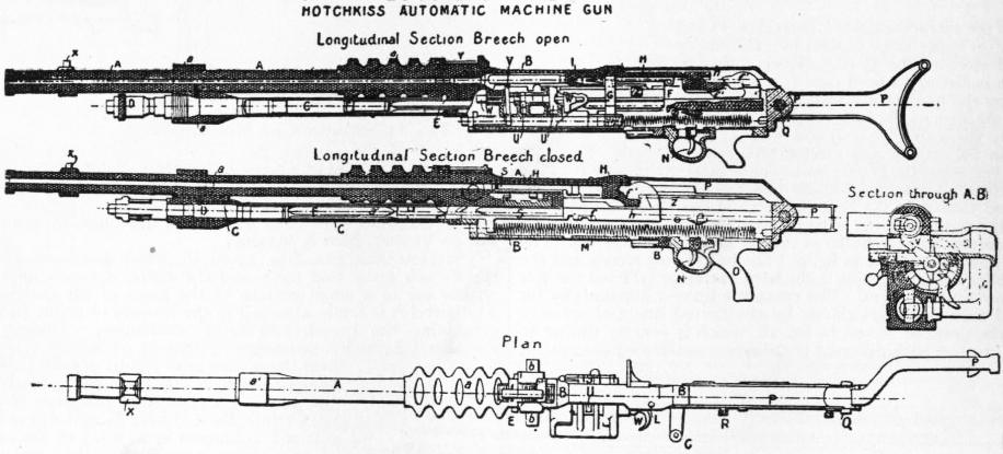 6 Modern improvements in mechanical details are only slight, as may be found by reference to the official handbooks of the gun, editions of 1903 and 1907.