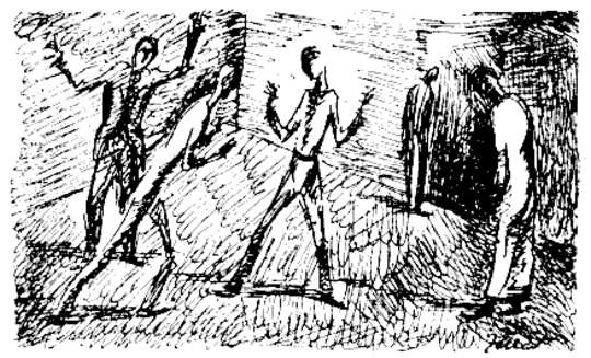 Es war noch Nacht, und alle Dinge sahen unwirklich und verzaubert aus. Zuweilen neigten sich die Gräser mit einem plötzlichen Ruck, ganz wie Schlafende sich neigen, die träumen, daß sie fallen, und dann spürte der Advokat einen kurzen warmen Hauch, der ebenso unvermittelt verschwand wie er kam. Am Himmel oben trieb eilig ein Gemisch von grauem und schwarzem Gewölk dahin, und im Zenit waren drei gelbe Sterne sichtbar, die in einer Richtung standen und wie ein fliegender Speer durch das Gewölk zu schießen schienen. Der Advokat betrachtete eine Weile aufmerksam den fliegenden Speer, und irgendein Gedanke rang in seinem Kopf. Dann eilte er mit kleinen, schlürfenden Schritten und so leise wie möglich über die sandbedeckten Wege des Anstaltsgartens dahin.