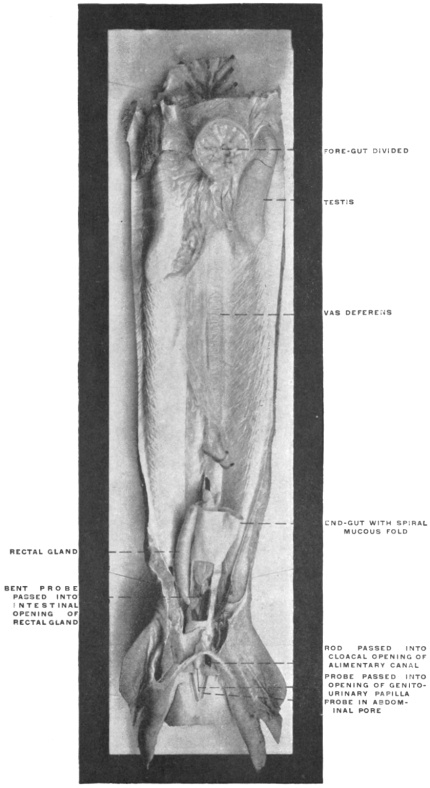 5 Iguana tuberculata, one of the large lizards native of South America. This animal forms an excellent object for the comparative study of the visceral and vascular anatomy of the abdomen. It possesses a well-differentiated intestinal tract, several coils of small intestine, a well-marked cæcum and large intestine. The examination of this or a similar reptilian form is to be highly recommended. Iguana is easily obtained in any of our large cities, as a considerable number of these animals are annually imported from Mexico and the South American states.