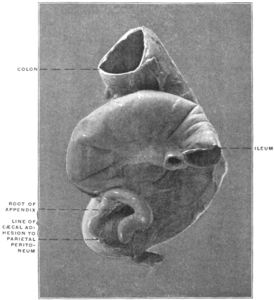 Variations of cæcum and appendix, 244