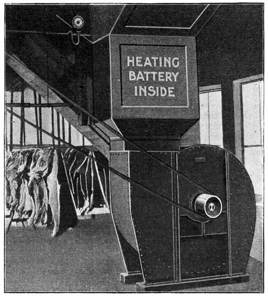 Figure 31 shows the Sutcliffe Fan and Heater installed in a tannery. At least two hygrometers should be hung up in a drying-room to determine the amount of moisture in the air.