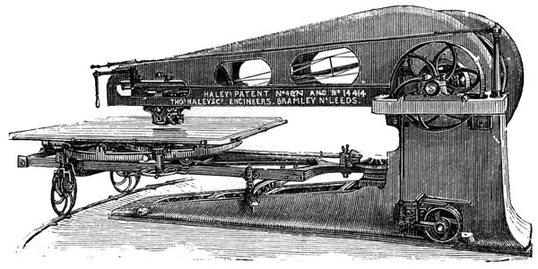 The finishing of the leather is simple. The butts or 131 bends are smoothed and stretched out by machine (Fig. 34), oiled on the grain, nailed or extended with special metal grips on square wooden frames, and dried. In some cases, they are hung up until nearly dry, rolled by machine instead of being put on boards and aired off in a drying stove.
