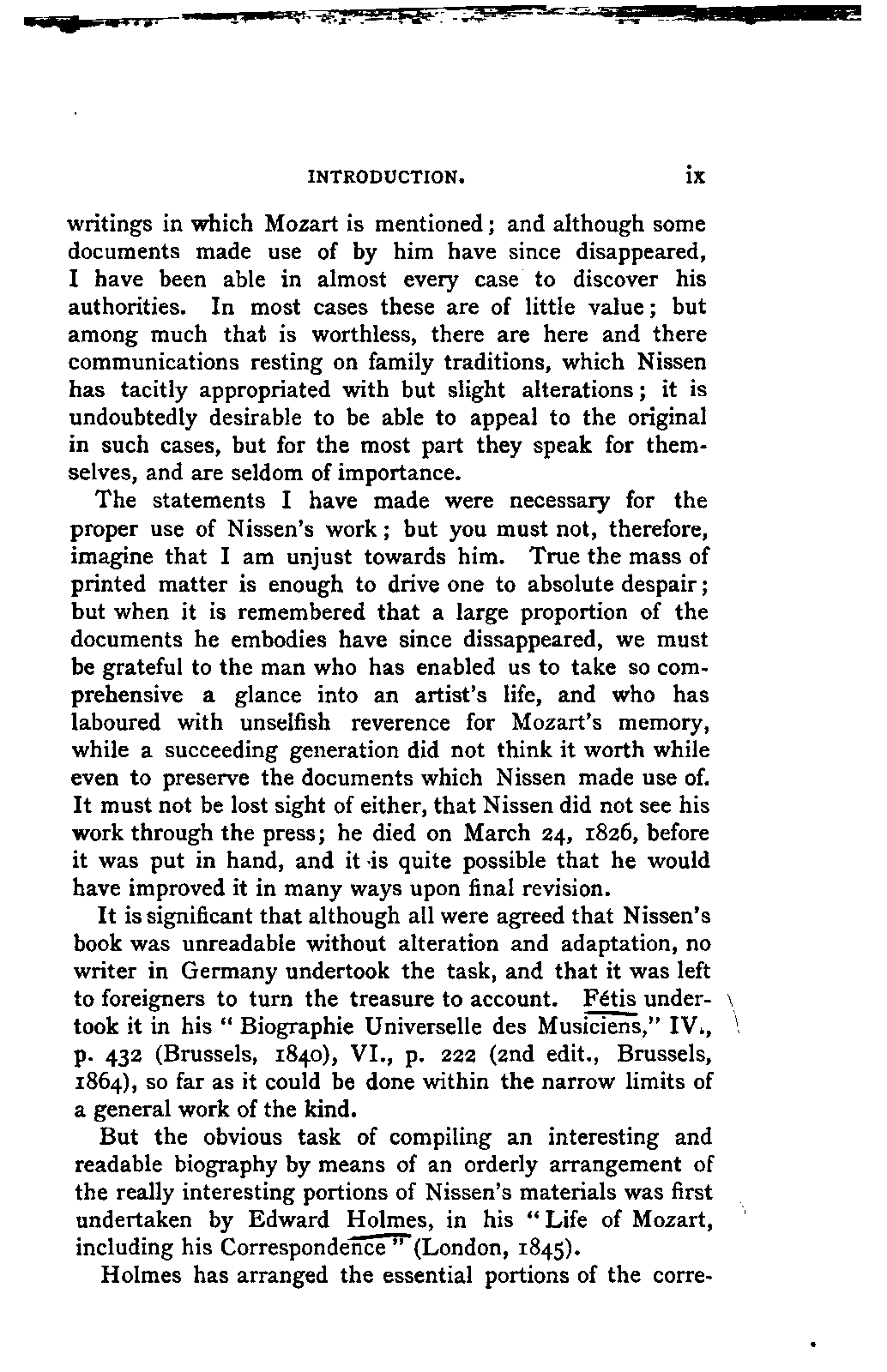 It is significant that although all were agreed that Nissen's book was unreadable without alteration and adaptation, no writer in Germany undertook the task, and that it was left to foreigners to turn the treasure to account. Fétis undertook