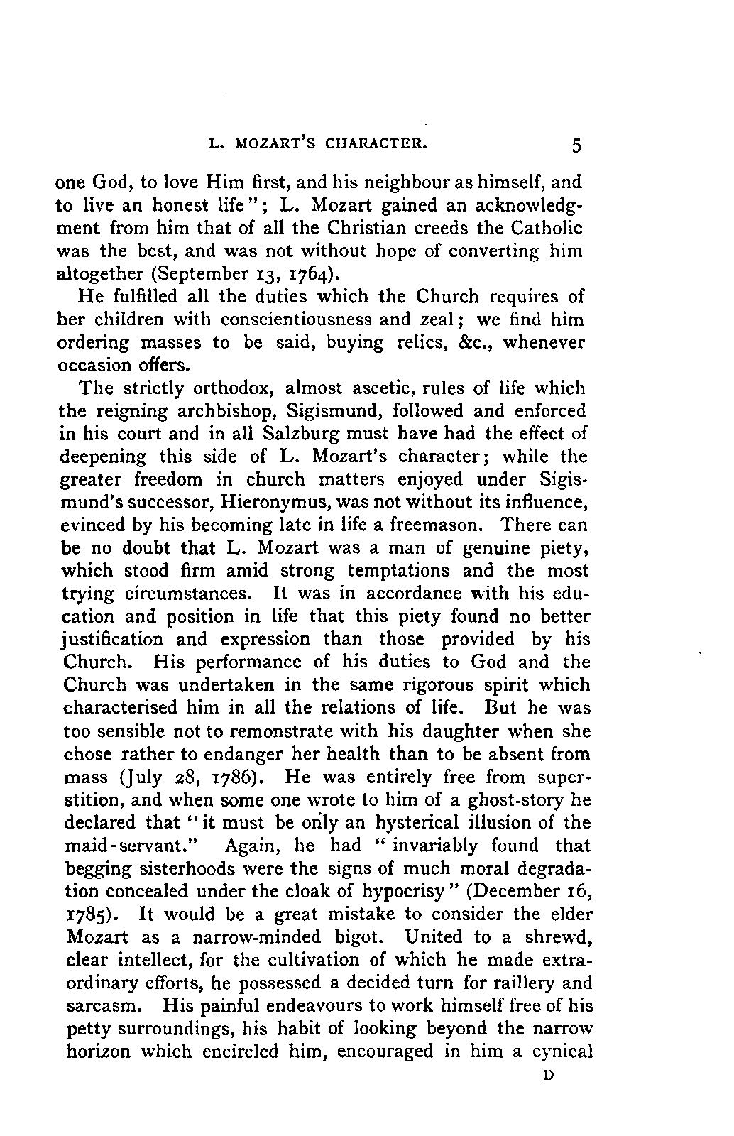 The letters of both Mozarts, father and son, were edited by J. Goschler in a spirit which is indicated clearly enough by the title of his book, "Mozart; Vie d'un Artiste Chrétien au XVIII. siècle." Paris, 1857.