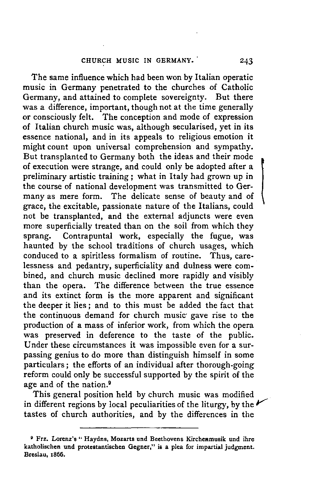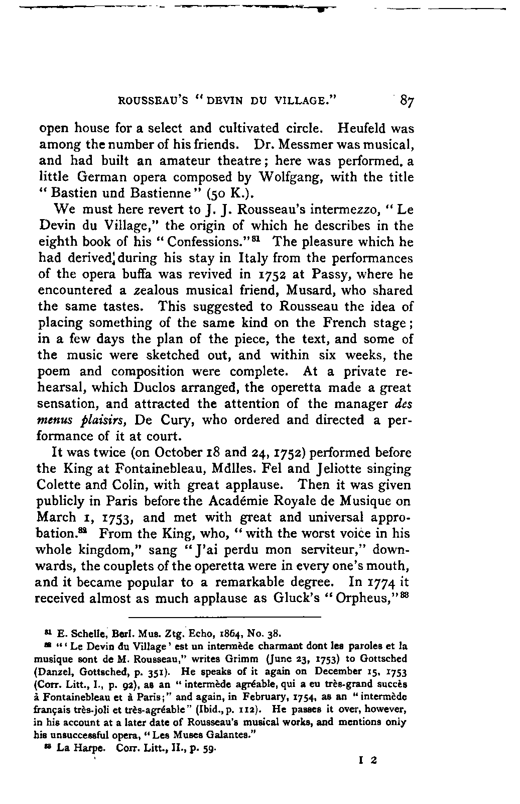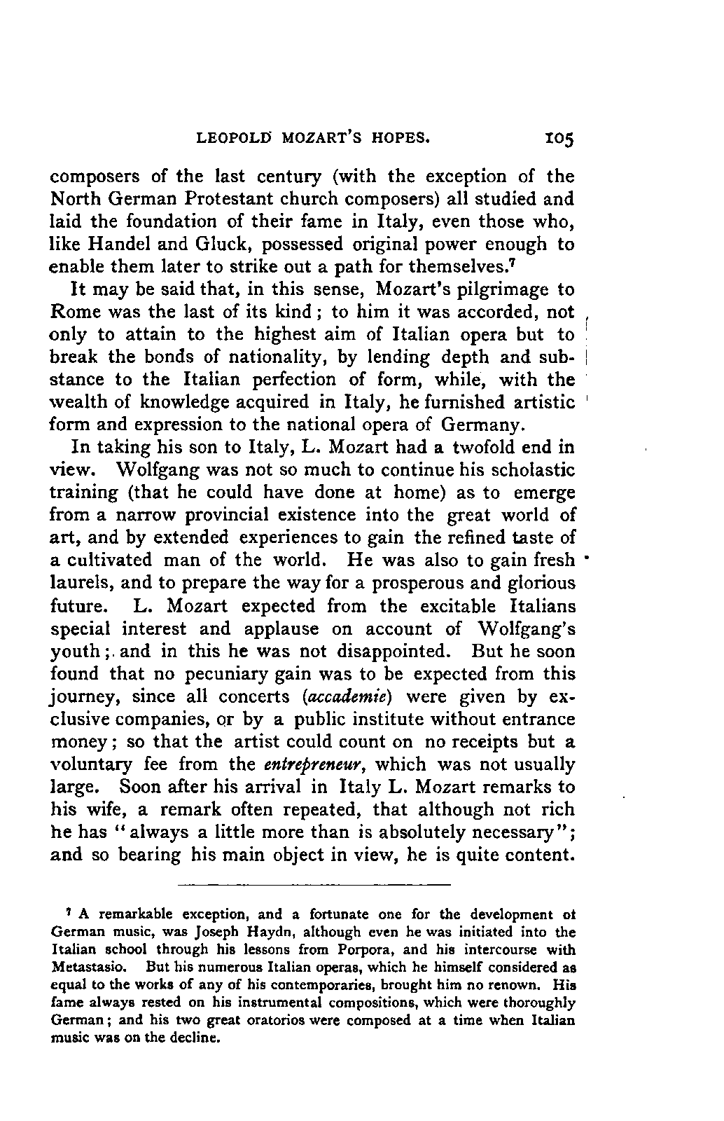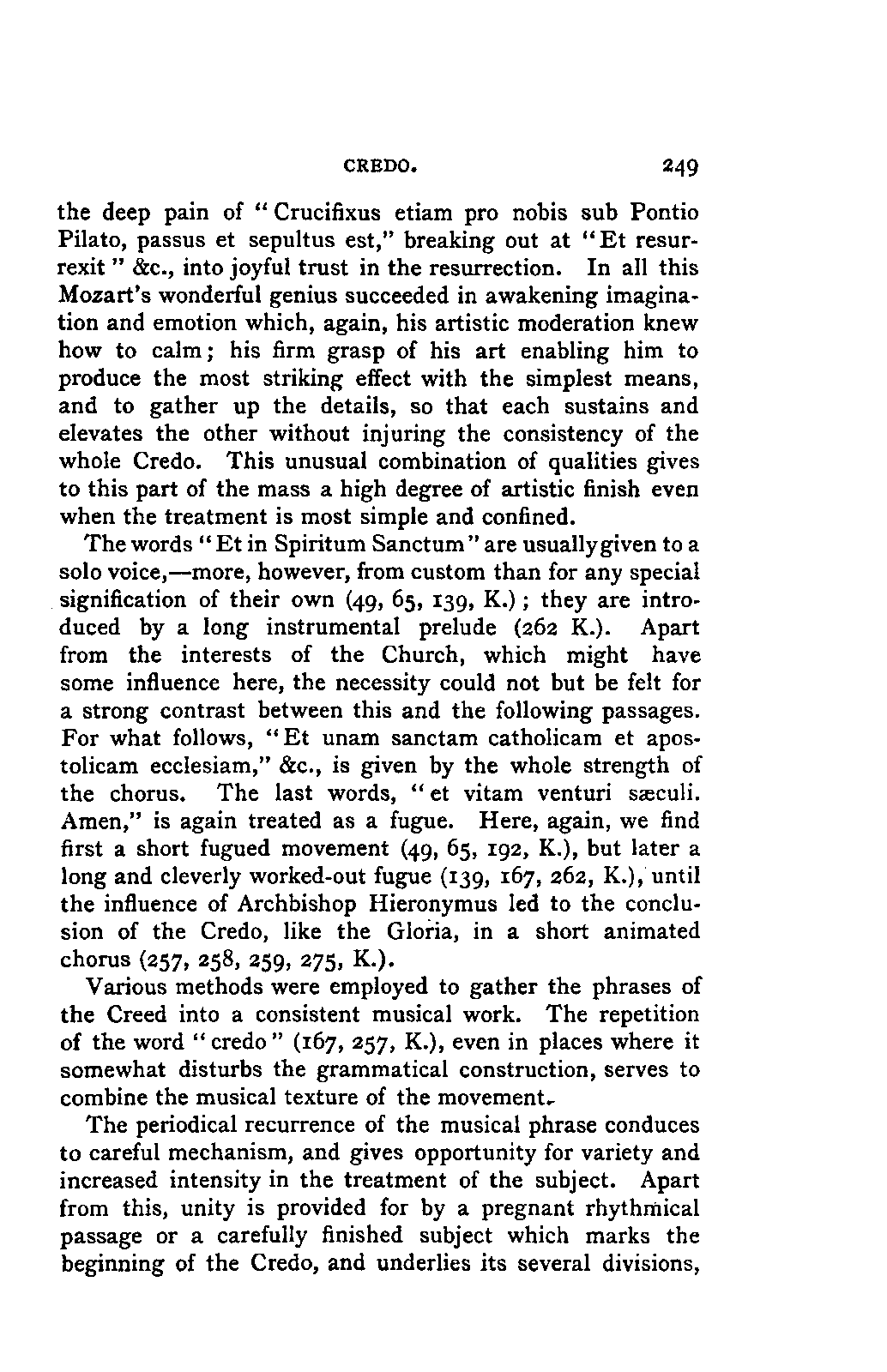 The new branch of musical literature, founded by Holmes and Jahn, already shows some considerable monuments. Passing by the voluminous and accurate thematic catalogues of Mozart by the Ritter von Köchel (1862), of Weber by Jahns (1871), and of Beethoven and Schubert by Nottebohm (1868 and 1874), works which properly belong to a separate department of the subject—we already possess the Life of Handel by Chrysander (vol. i., 1858; II., 1860; III., 1867), that of Beethoven by A. W. Thayer (vol. i., 1866; II., 1872; III., 1879), that of Haydn by C. F. Pohl (vol. i., 1875; II., 1882)—all three still in progress—and that of Bach by Spitta (vol. i., 1873; II., 1880). But these laborious and conscientious works, while they rival and even surpass Jahn in their wide range and the manner in which they embalm every minute particular relating to the subject, are far behind him in lucidity, and in the ease with which he handles his vast materials. In these respects, as might be expected from his literary position, Otto Jahn stands hitherto quite alone.