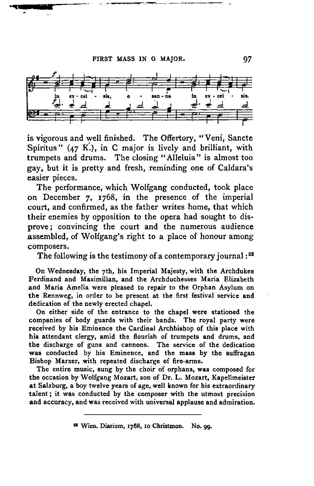 My valued friend Karajan in particular, with his musical knowledge and his intimate acquaintance with Vienna, rendered my stay in that city as instructive as it was agreeable. He had a good opportunity of experiencing how much trouble one is capable of giving to a friend who is always ready with explanations, and willing to enter on the driest search into matters of detail, if he can thereby help forward another. At the Imperial Library I found not only the different manuscripts of the Requiem which serve as the surest testimony on the much debated question of its authorship, but many other important manuscripts and rich material of all kinds, my access to which I owe to the unfailing courtesy of the custodian, A. Schmid.