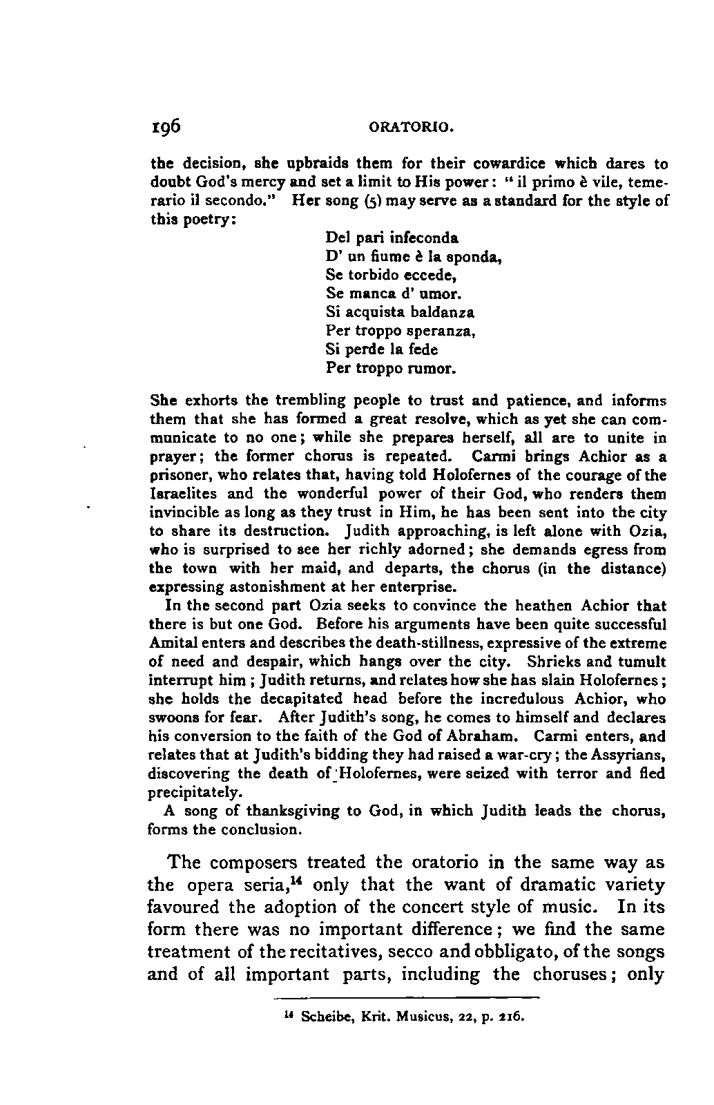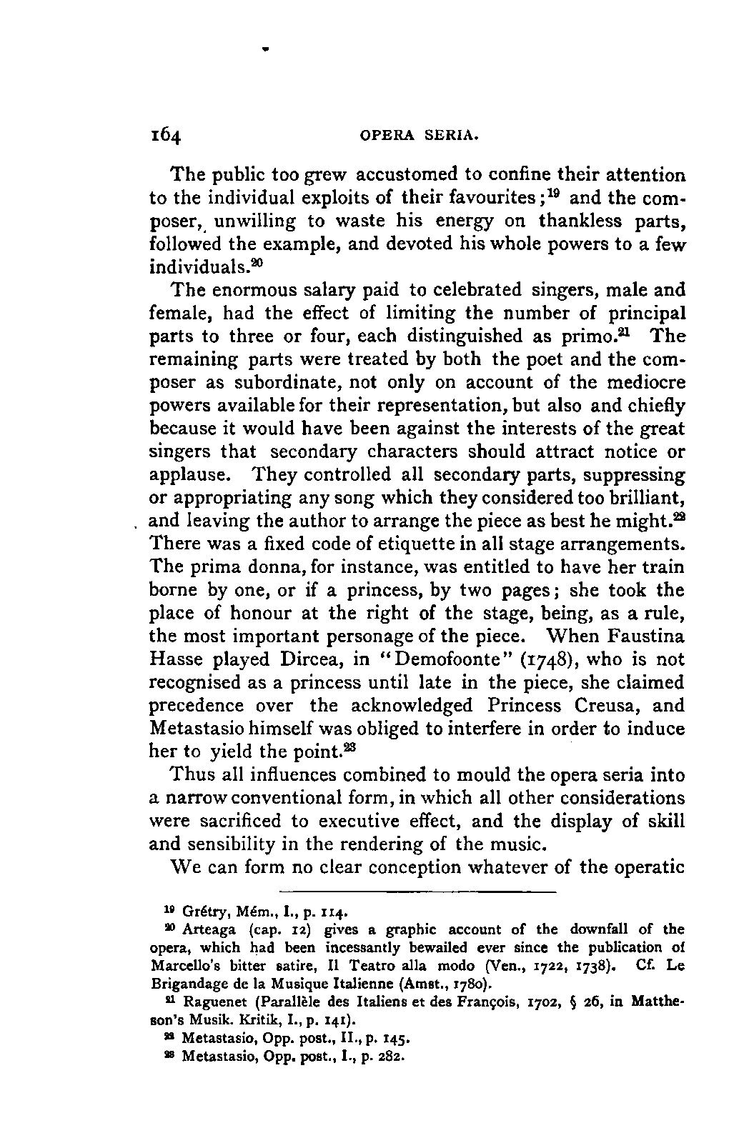 I have striven with a certain amount of zeal to bring together all that appeared to render my narrative more graphic and lifelike, and have not refrained from adducing my authorities, partly for the sake of accuracy, partly to point the way to those who find the subject of interest. I have gone even further than this, and have added to the names of many persons, principally musicians, of whom mention had to be made, a short notice of their life and sometimes an epitome of their performances. It is probable that the minority of my readers will already have such facts in their minds, and they are essential to a clear perception of the whole work: I have been anxious to spare them the trouble of continual reference to a biographical dictionary.