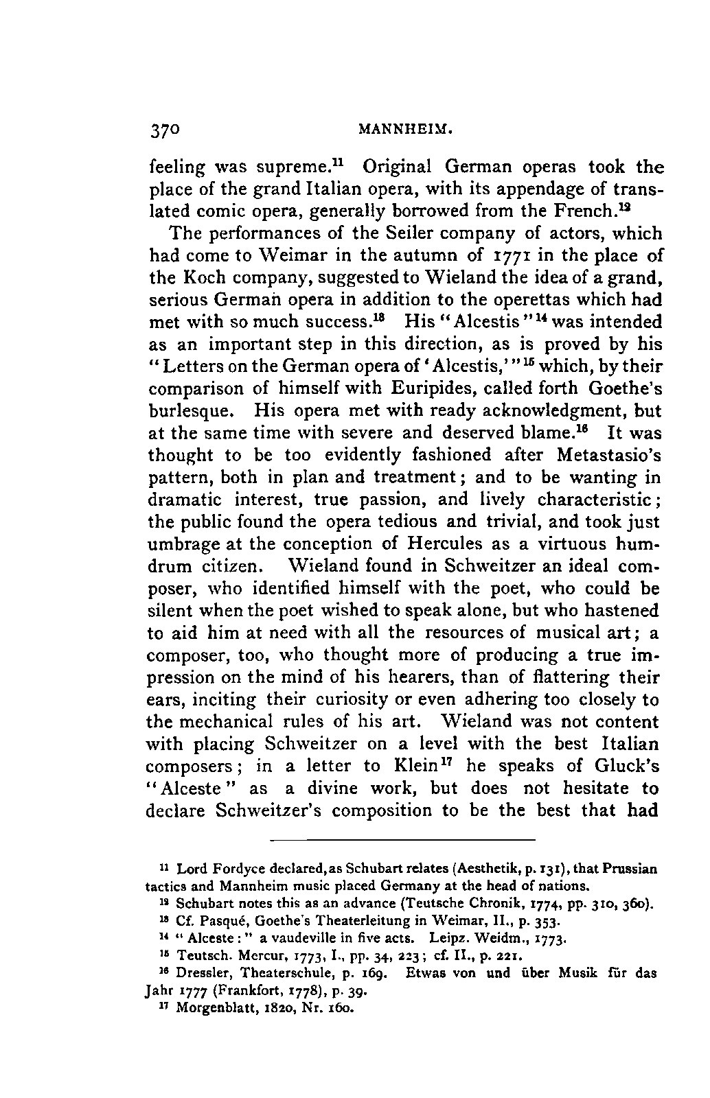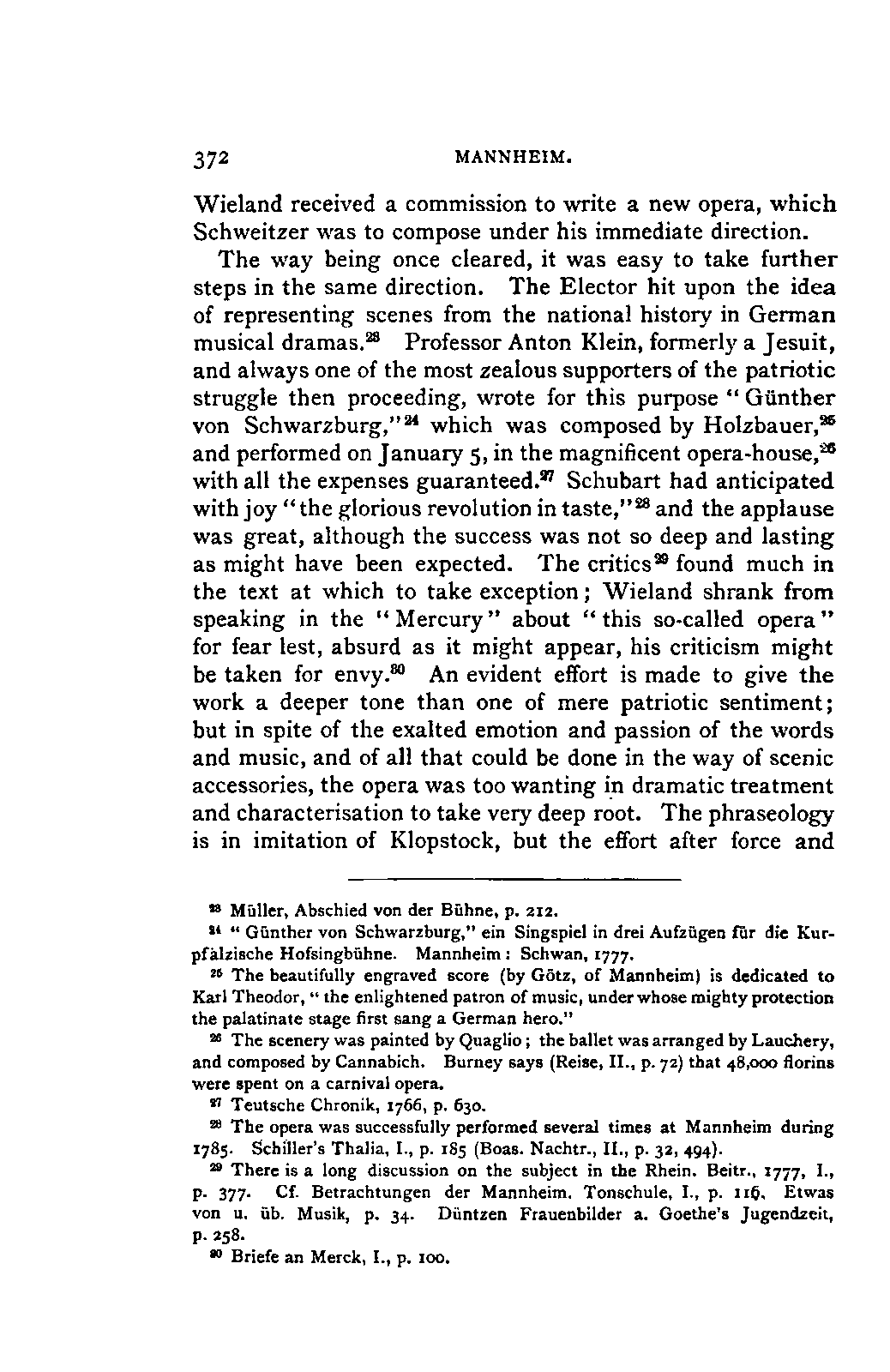 Schweitzer's Musik und die Vorstellung dieses Singspiels in Mannheim.