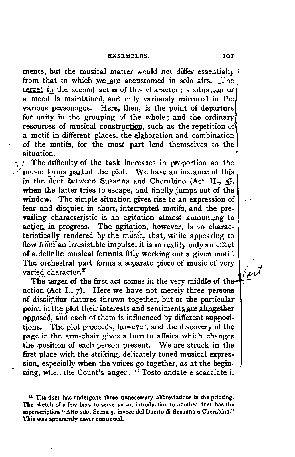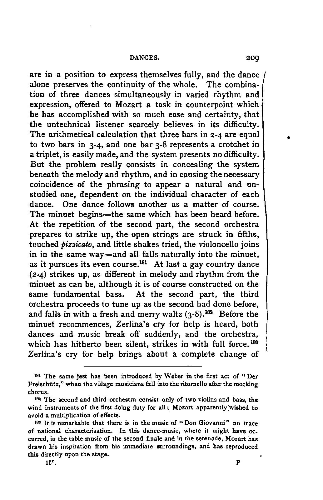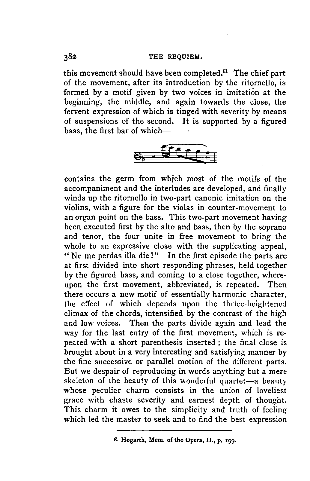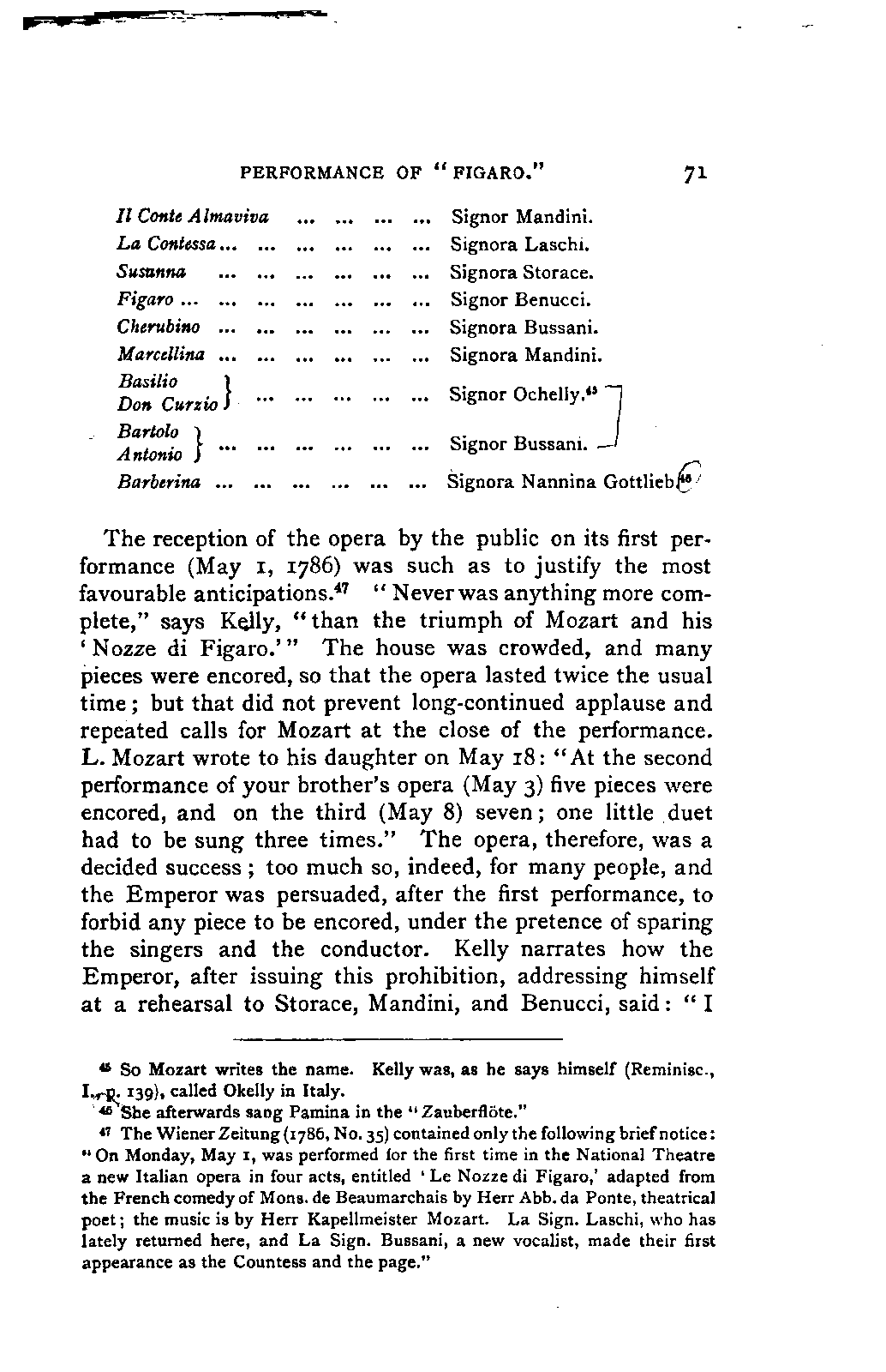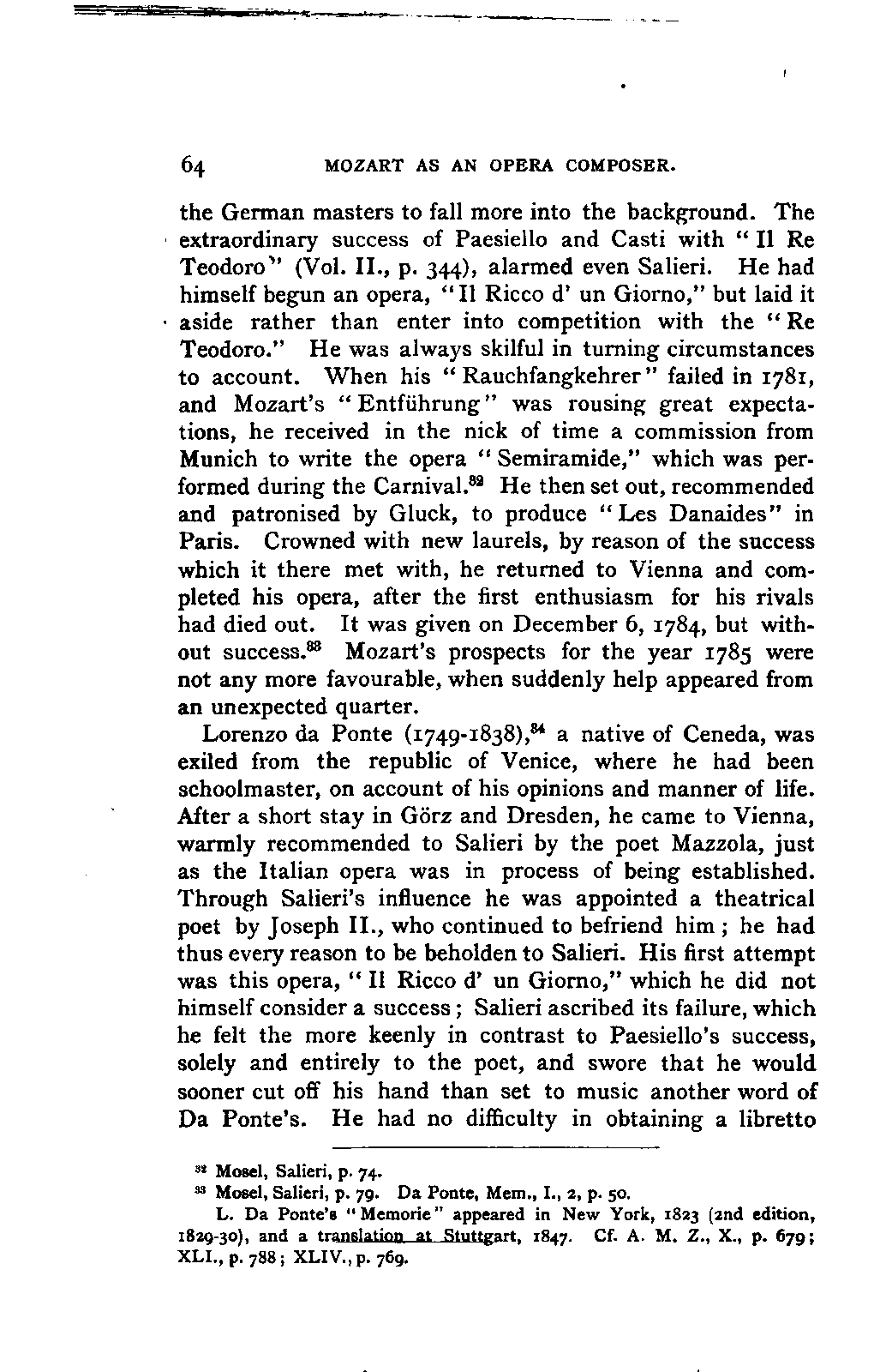 Any difference of opinion as to this work at the present day can only exist with regard to minor details, and it will scarcely now be asserted by any one that "a piece may be recognised as Mozart's by its rapid succession of daring transitions." 15 We are accustomed to take our standard from Beethoven, and it seems to us almost incredible that a contemporary of Mozart's, the Stuttgart Hofmusicus, Schaul (who acknowledged, it is true, that he belonged to a time when nothing was heard but Italian operas and musicians), should exclaim: 16 —