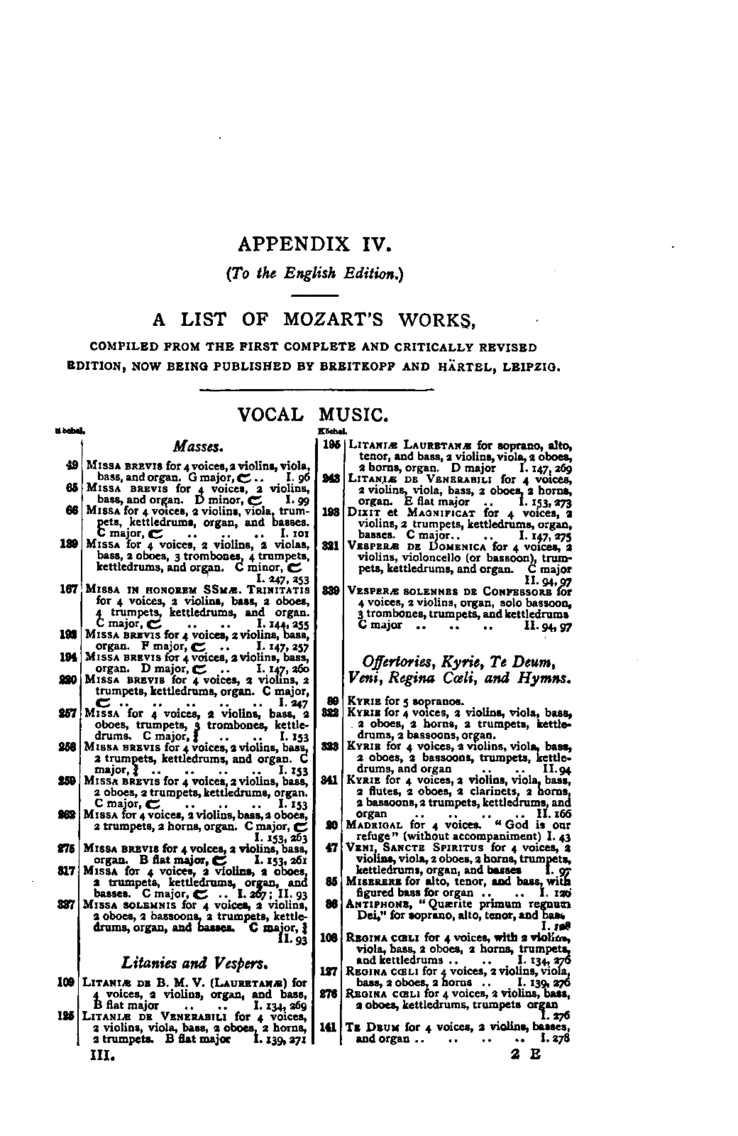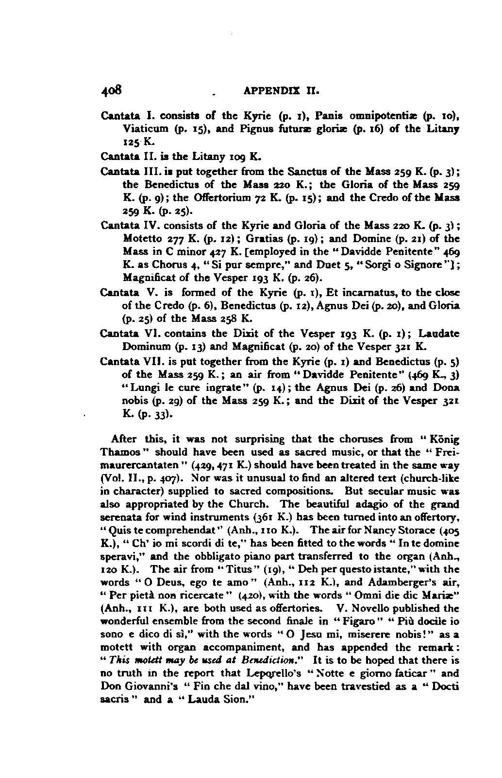 APPENDIX II. ARRANGEMENTS OF MOZART'S CHURCH MUSIC.