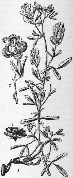 LUPINE (Lupinus), in botany, a genus of about 100 species of annual and perennial herbaceous plants of the tribe Genisteae, of the order Leguminosae. Species with digitate leaves range along the west side of America from British Columbia to northern Chile, while a few occur in the Mediterranean regions. A few others with entire leaves are found in Brazil and eastern North America. The leaves are remarkable for “sleeping” in three different ways. From being in the form of a horizontal star by day, the leaflets either fall and form a hollow cone with their 127 bases upwards (L. pilosus), or rise and the cone is inverted (L. luteus), or else the shorter leaflets fall and the longer rise, and so together form a vertical star as in many species; the object in every case being to protect the surfaces of the leaflets from radiation and consequent wetting with dew (Darwin, Movements of Plants, p. 340). The flowers are of the usual “papilionaceous” or pea-like form, blue, white, purple or yellow, in long terminal spikes. The stamens are monadelphous and bear dimorphic anthers. The species of which earliest mention is made is probably L. Termis, which was cultivated by the ancient Egyptians. It is wild in some parts of the Mediterranean area and is extensively cultivated in Egypt. Its seeds are eaten by the poor after being steeped in water to remove their bitterness; the stems furnish fuel and charcoal for gunpowder. The lupine of the ancient Greeks and Romans was probably L. albus, which is still extensively cultivated in Italy, Sicily and other Mediterranean countries for forage, for ploughing in to enrich the land, and for its round flat seeds, which form an article of food. Yellow lupine (L. luteus) and blue lupine (L. angustifolius) are also cultivated on the European continent as farm crops for green manuring.