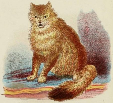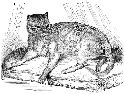 “Zula,” the property of Mrs. Captain Barrett-Lennard. This cat was brought from Abyssinia at the conclusion of the war, fed on the way home on raw beef, and was long very wild. She is now very fond of her mistress, but has a great many eccentricities which other cats have not, and is altogether a wonderful specimen of cat-kind.