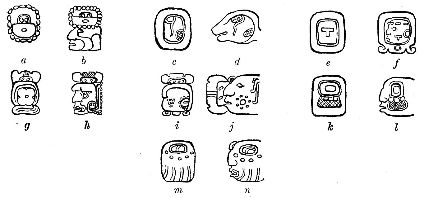 [208] See Maudslay, 1889-1902: IV, pl. 60, glyphs M1-N2.