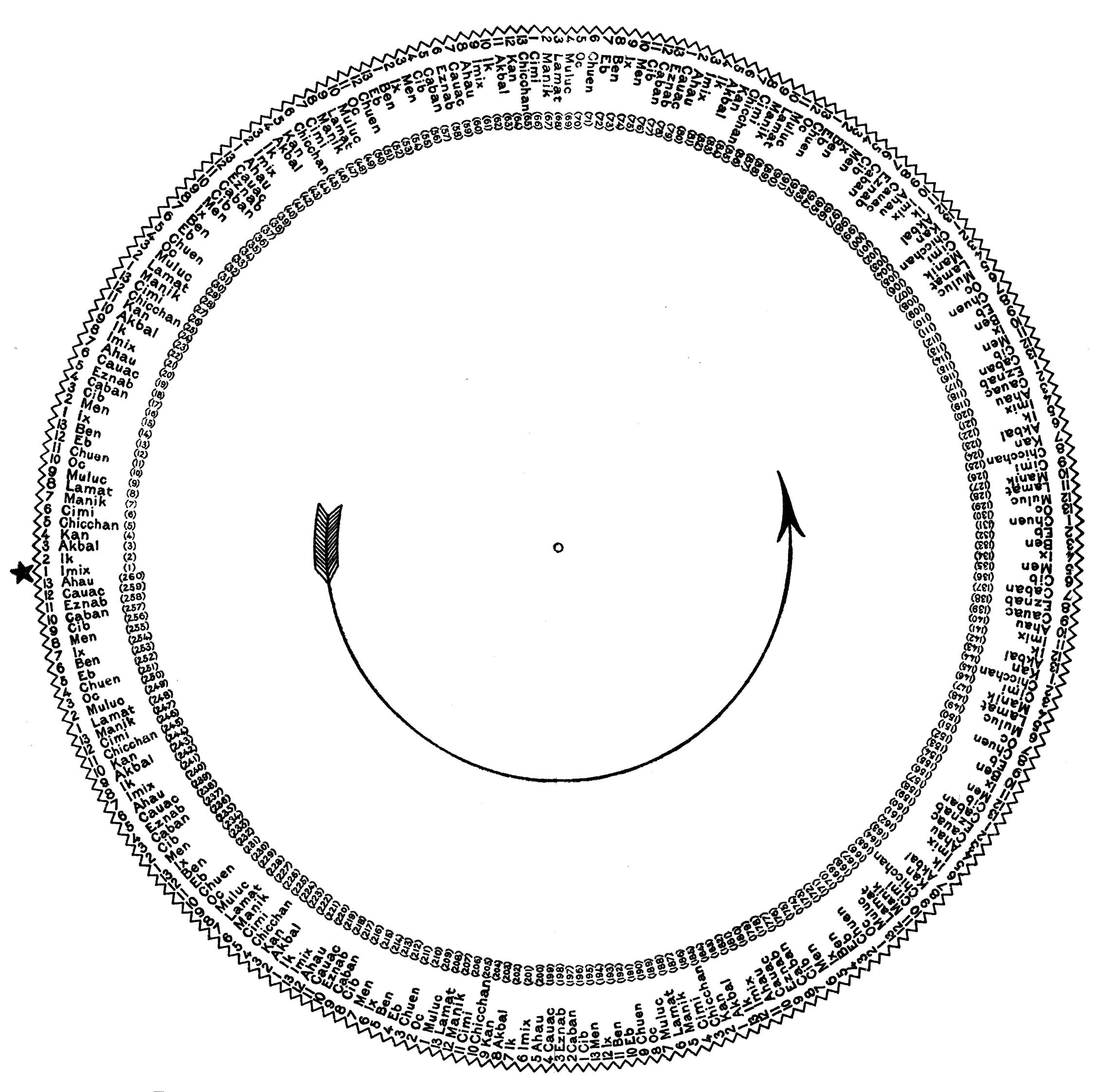 [246] The last sign Chuen, as mentioned above, is only a repetition of the first sign, indicating that the tonalamatl has re-entered itself.