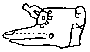 In like manner 2 is repeated in 6 and 14. 7, 11 and 15 (probably also 19) are, however, the familiar cross b; 8 is the head of E with a prefixed knife; the intention here may have been to show that human sacrifice would be likely to have an auspicious influence upon the harvest. 10 and 16 are another unknown head. In 5 we see the familiar Kan-Imix sign, which, for the present, I am inclined to regard as denoting a feast or a sacrificial meal.