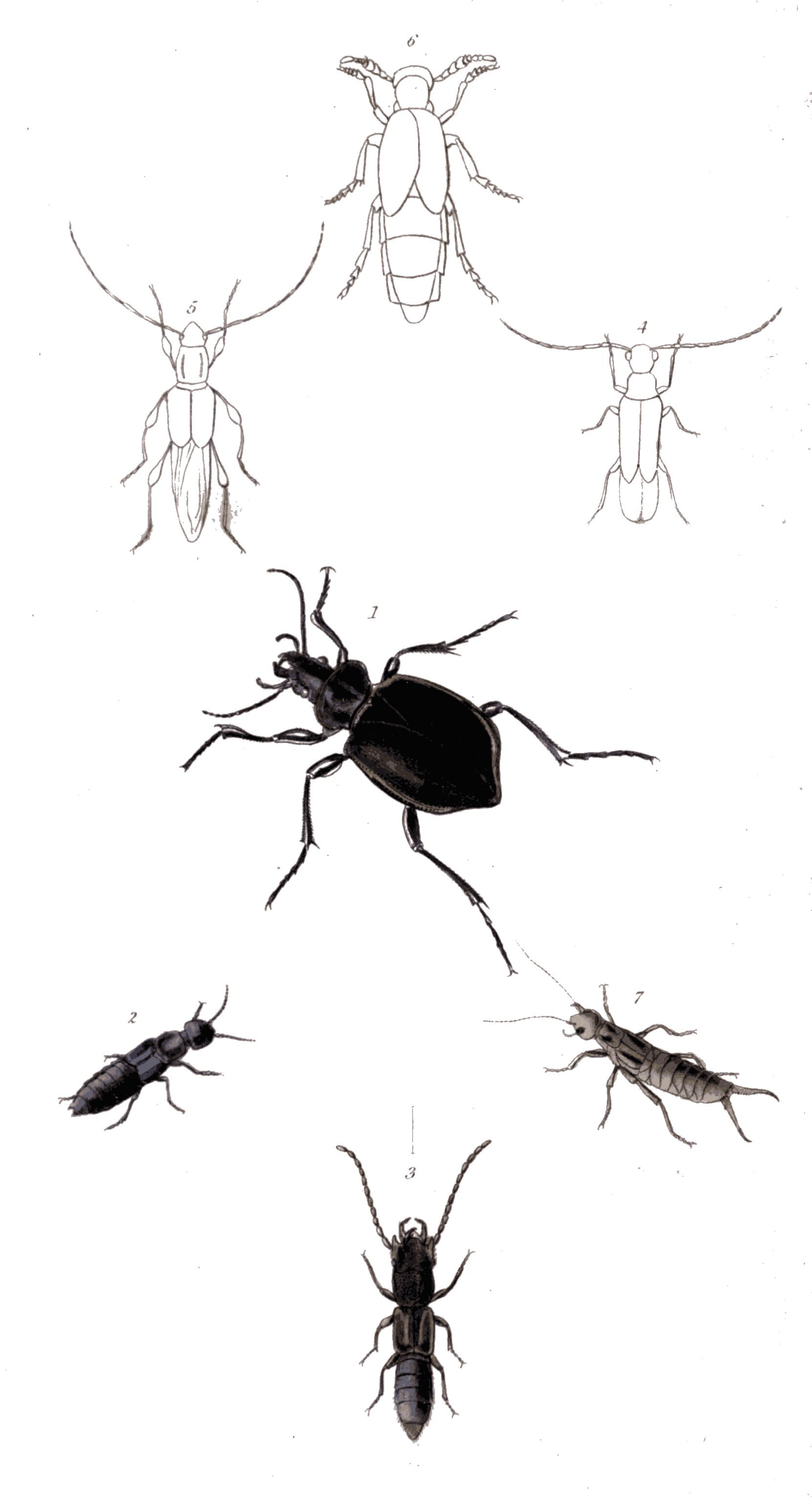 [755] The nests of this animal which I saw at Fontainebleau (in the pit producing the fossil named after that place) were scarcely half the dimensions here given, but they might probably be younger insects. I kept one in a box of sand several days, in which it regularly formed its pit, whenever obliterated by shaking. The bottom of the box unfortunately came out as I was upon my return to England, and the animal was killed.