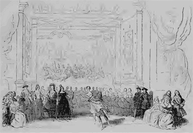 Il y a spectacle à la cour, et ballet mythologique. Sir Tristan Crackfort y représente le puissant Jupiter, et la reine d'Angleterre l'auguste Junon. Tous deux descendant de leur gloire, et viennent danser un menuet avec Mars, Apollon, Cybèle, etc. Vénus paraît à son tour, poursuivie par un berger. Elle résiste à l'audacieux, elle fuit en se jouant, et, dans sa fuite, elle décrit les figures les plus gracieuses, elle prend mille poses pleines de volupté, elle charme les dieux, elle enivre les humains, et surtout Lyonnel, qui reconnaît dans la déesse son inconnue mystérieuse, Hors de lui, il s'avance, il tombe aux pieds de Vénus... Jugez du trouble et de la stupeur générale! Le ballet s'interrompt; le ciel et la terre se, rapprochent, les mortels et les dieux errent pêle-mêle; l'imprudent trouble-fête est entraîné hors de la salle, et Vénus s'évanouit.