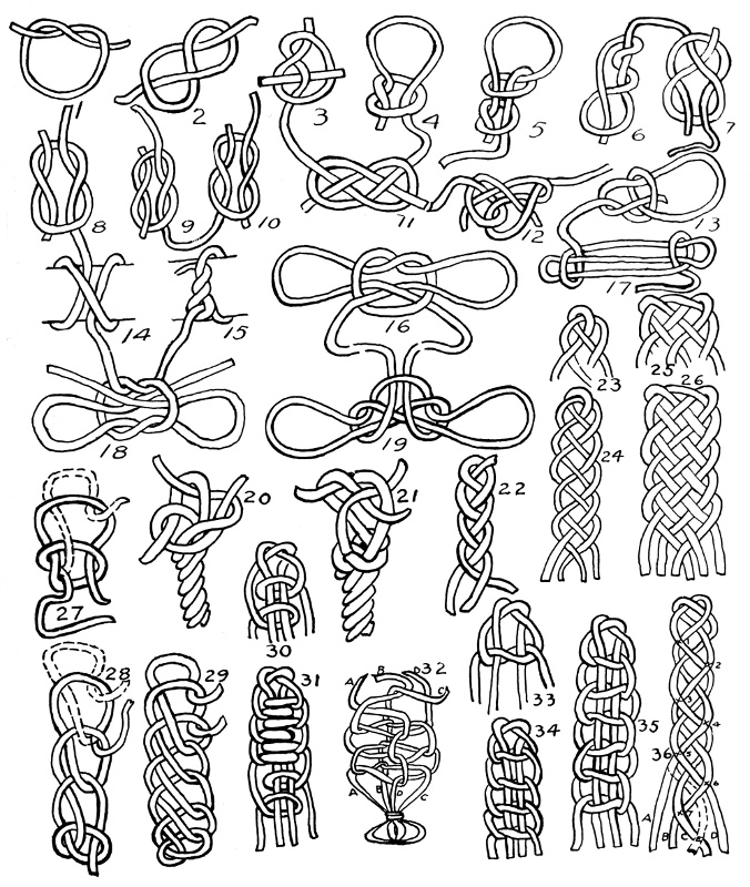 Most of us are called upon, in the course of our daily duties, whether afloat or ashore, in camp or at home, to hitch up pack animals, do up packages, equipments and outfits, and make fastenings on sails, tents, scaffolding and play apparatus. This involves the tying of a great number of knots and in many cases life and limb depend upon the correct tying of those knots. The seamen, textile workers and civil engineers are pastmasters of the art. Our scouts, sailors and soldiers are taught knot-tying as an essential factor in their training. Would it not seem a part of wisdom, for the sake of safety and economy in time and good nature, for everybody to master these knot problems? It would, at least, be a very practical part of the training for children in the schools.