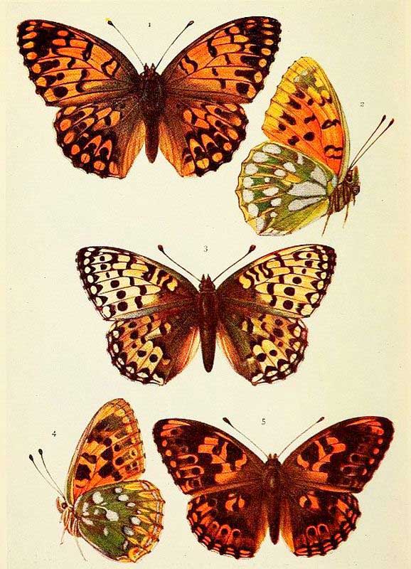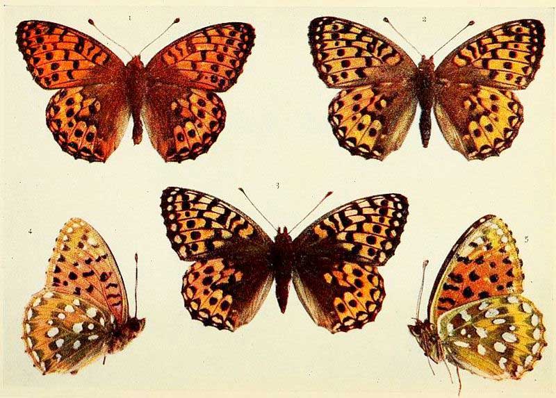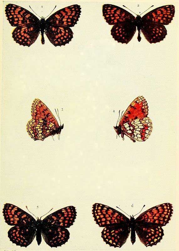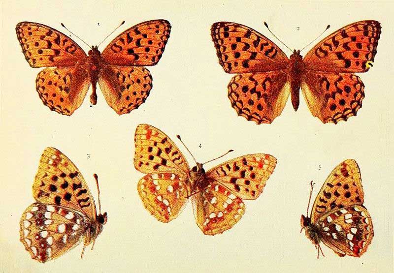 Duke of Burgundy Fritillary. 1, 2, 4 male; 3, 5 female.