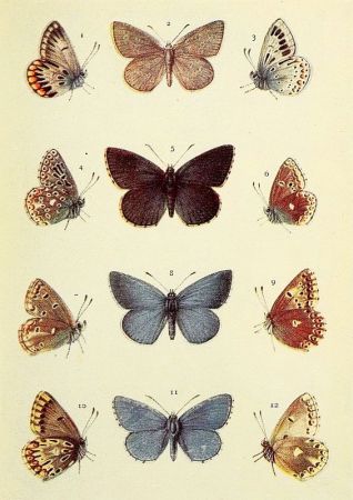 As regards British butterflies, however, it will be found that these may be known, as such, by their clubbed horns. Only the Burnets among British moths have horns in any way similar, and these are thickened gradually towards the extremity rather [Pg viii]than clubbed. Day-flying moths, especially the bright-coloured ones, might be mistaken for butterflies by the uninitiated, but in all these the horns will be found not at all butterfly-like.