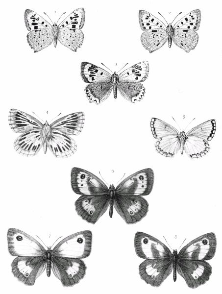 With kind permission of the Ray Society, figures of the following larvæ and pupæ have been reproduced from Buckler's "Larvæ of British Butterflies":—P. daplidice, C. edusa, M. athalia, P. c-album, S. semele, A. hyperanthus, C. typhon, C. pamphilus, C. rubi, C. argiolus, A. thaumas, A. actæon. Larva only—L. sinapis, A. selene, A. aurinia, and T. pruni.