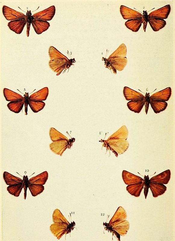 Small Skipper. 1, 3 male; 2, 4 female.