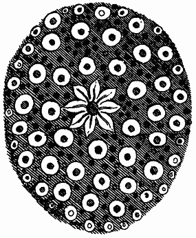 il étoit tout de pierre blanche, sa partie superieure étoit une grande pierre plate de figure triangulaire, posée sur six colonnes hautes d'environ trois pieds, sur une base en ovale qui s'élevoit de terre à la hauteur de quatre ou cinq pouces, sur la pierre à trois angles on voyoit une Inscription de caractéres bizares, qui n'étoient connus d'aucun de nôtre troupe, & en bas sur la circonference de la baze paroissoient encore d'espace en espace les mêmes caractéres, mais presque effacez; ce Monument fit naître entre nous une infinité de raisonnemens, car nous voyions trés-bien que ce n'étoit pas là un Ouvrage du hazard, mais j'en laisse la décision à de plus habiles gens que moi. Etant sortis de ce lieu nous marchâmes droit au Ruisseau dont je viens de parler, & nous le suivîmes en remontant vers sa source: il sortoit d'une trés belle Fontaine qui étoit dans une Grote creusée par la nature dans une des montagnes de la Vallée. J'y entrai d'abord, elle étoit revêtue d'une trés belle mousse verte depuis le haut jusqu'en bas, & dans le fonds, à la hauteur d'un homme, on y voyoit trois conduits sur une même ligne, & à distances égales: l'eau en coulant hors de ces conduits faisoit un agréable petit murmure qui approchoit du gazoüillement des oiseaux, & tomboit dans une espece de Bassin, qui en étant fort rempli, elle s'épanchoit par dessus tous ses bords, & se réunissant par devant dans une grande crevasse qui étoit dans un Rocher immédiatement au dessous, elle s'écouloit en bas; ce Bassin étoit profond environ d'un pied: il y avoit au fonds plusieurs petites pierres rouges & plates de différentes figures, savoir de quarrées, de rondes, de triangulaires, & en forme de cœur, voulant en prendre quelques unes, je pûs à peine souffrir la froideur excessive de l'eau, tout joignant la Fontaine & au dedans de la Grote, il y avoit un trou rond & fort profond, large d'un bon empan, qui exhaloit une vapeur si chaude, que je me pensai brûler le visage, m'étant par hazard placé tout vis à vis, ce ne fut pas sans un extrême étonnement que je vis sortir presque d'un même endroit le froid & le chaud tout ensemble. Il y avoit dans plusieurs endroits de cette Valée, divers arbustes très-beaux & trés singuliers, & un entr'autres dont j'ai donné la figure à la lettre E.