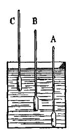 De là il faut conclure: d'abord, que le liquide augmente de volume en s'échauffant, diminue de volume en se refroidissant; ensuite, qu'à chaque état calorifique du liquide correspond un volume déterminé, de telle sorte que le niveau dans la tige reviendra le même chaque fois que l'appareil sera placé dans les mêmes conditions de chaleur.