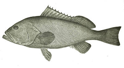 And last, but not least, comes the jewfish, the Gargantua of the water, though clothed in a vesture of modest blackish gray. It is somewhat like a colossal black bass in contour and appearance, and in fact a closely allied species, the jewfish of the Pacific, is called black bass on the coast of southern California. The David who slays this Goliath of the deep should be proud of his achievement, if it is killed on the rod. From twenty to one hundred pounds is about the usual limit of rod-fishing for the jewfish, though a few have been killed on the rod upward of two hundred or three hundred pounds at Catalina Island on the California coast.