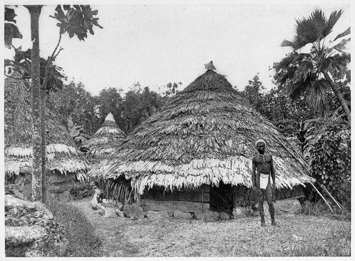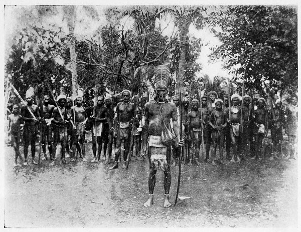 The next morning after our arrival, this little steamer came in from Malaita, where it had been enforcing the law. A white missionary at Ulava had had trouble with the natives, and they had threatened to kill him; so he cleared out in a whale-boat to the governor's, who sent the steamer there. As they steamed up the lagoon they were fired on by the natives, who had old Snyder rifles. When they landed fifty police natives, they were attacked with spears and arrows, several being killed. Then the steamer sent several shells into the village, and killed seven natives. Poor Bannerman's heart throbbed on hearing this—for the captain of the Moresby could not say that this was a joke. He left the next morning for his plantation, accompanied by six natives, and I never heard of him again. Anyway, I'll bet that he wished more than once on that trip that he were back in Brisbane.