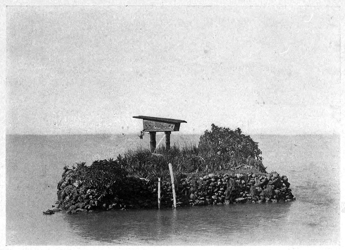 We steamed ten miles into the passage between the two islands; then I stopped the engine and we slowly drifted through. At sunset a canoe followed us for an hour, but we drifted too fast for them, and they gave it up when about five miles from shore. I'll wager it was a tired canoe-load of natives that put in p356 to land last night, for they had to paddle hard against the current.