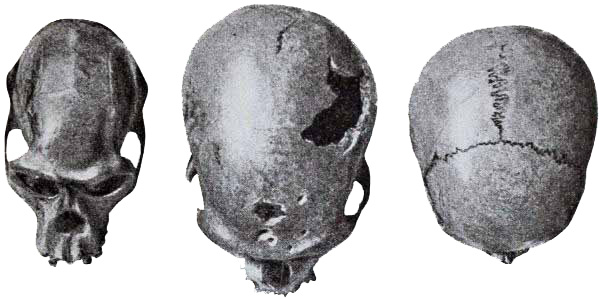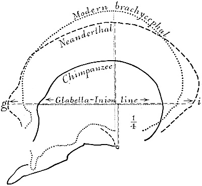 Interest in human evolution centres chiefly in the skull and in the brain. The slope of the forehead and the other angles, which are so important in forming an estimate of the brain capacity, may be directly compared throughout this volume, because the profile or side view of every skull figured is placed in exactly the same relative position, namely, on the lines established by the anatomists of the Frankfort Convention to conform to the natural pose of the head on the living body.